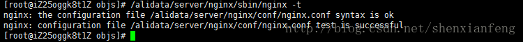 [root@iz2ze3oyrjbxg32wecre15z /]# /alidata/server/nginx/sbin/nginx -t