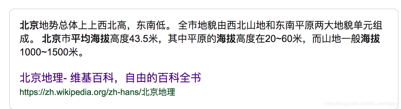 我们使用GEE计算的平均海拔是300多米,这里显示平均海拔只有43.5米。问题出在哪里?具体哪个数据是对的?我们在仔细看一下维基百科中的描述是“北京市”,并不是北京地区,而且后面还说了一个“平原”和“山地”(查询百度百科可以知道平原占32%,山地占68%)。问题就在这里我们使用GEE计算的是北京地区包括整个地区,而百科中写的只是“北京市”也就是北京的平原有人居住的地区平均海拔,因此这两个平均值肯定不一样。