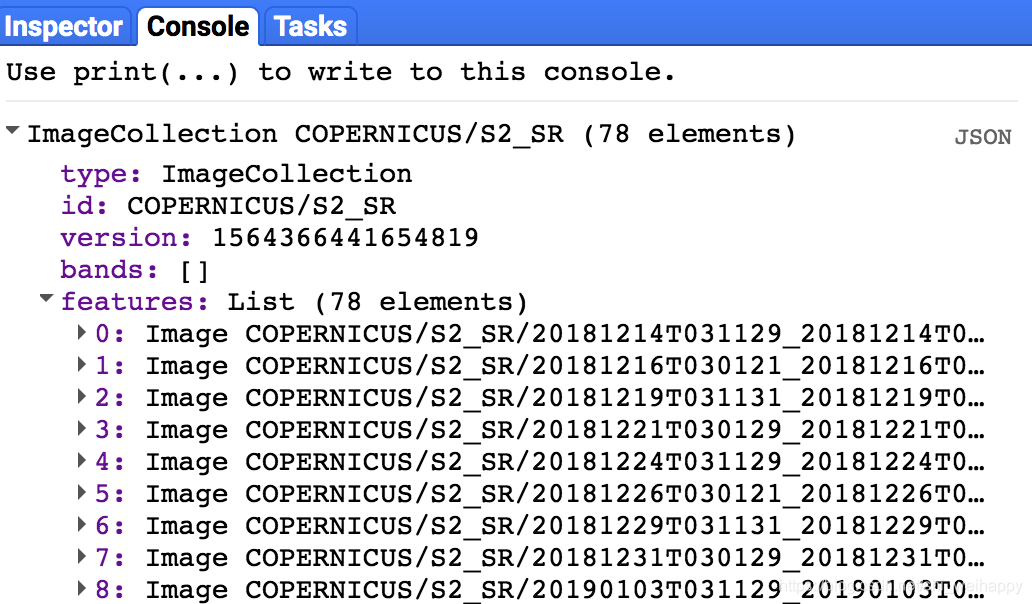 很多人没有看出问题,但是如果仔细观察会发现SR数据只有2018年12份之后的,这个并不是我们代码的错误,只是是GEE官方文档中关于SR数据说明没有写明白。它全部的数据是从2017年开始的,但是目前GEE还没有完全将这个SR数据导入进来。这个在使用时间筛选的时候一定要注意,还有就是GEE的文档也不能保证100%的正确,我们需要从多渠道来确认相关数据。