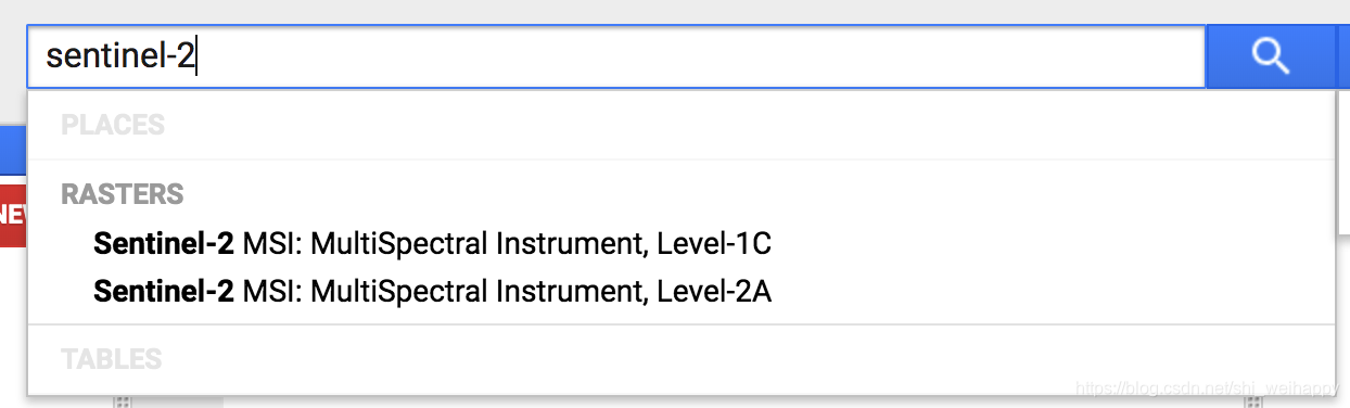 类似这种问题其实就是在找GEE中有哪些数据,这个我们一种方式可以通过GEE提供的官方数据网站来查询,另外就是通过GEE编辑器中的搜索框来搜索。这里搜索也是有一定的技巧,我们不知道在GEE中是否有Sentinel-2大气校正数据,那么我们可以换种思路可以查找GEE中有哪些Sentinel-2数据。结果如下图: