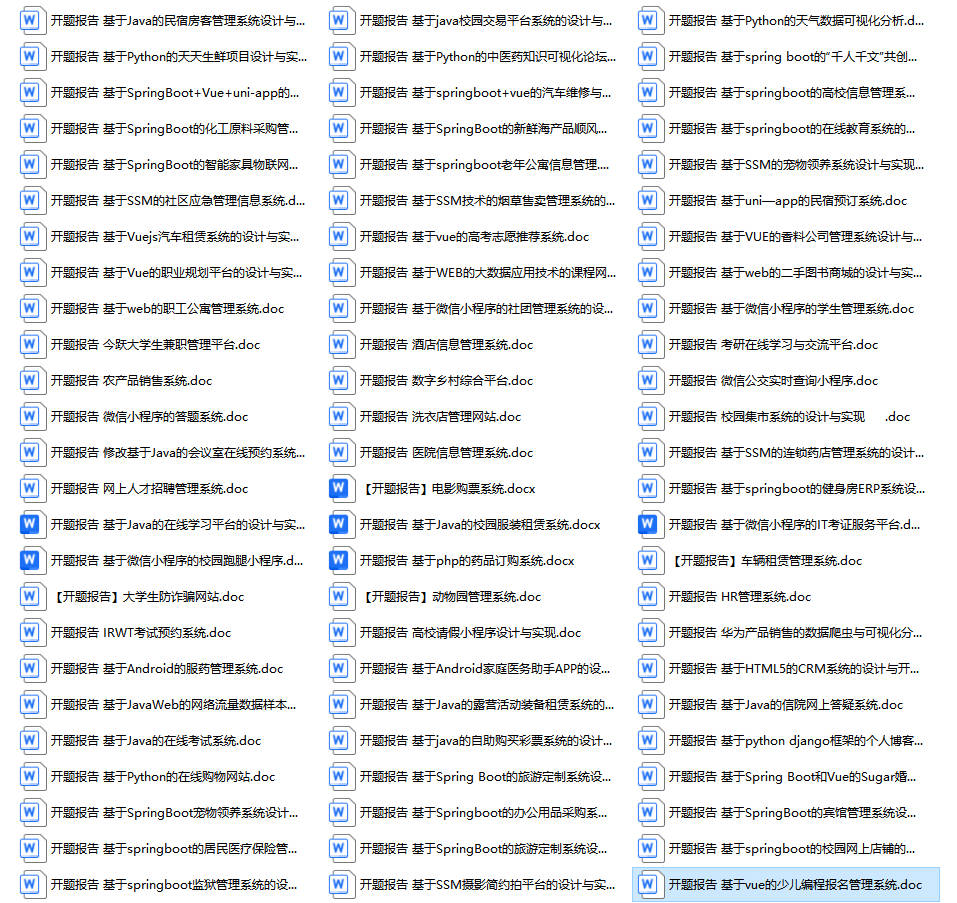 以上是某同学的毕业设计答辩的过程,如果你现在还没有参加答辩,还是开题阶段,已经选好了题目不知道怎么写开题报告,可以下面找找有没有自己符合自己题目的开题报告内容,列表中的开题报告都是往届真实的开题报告,可发送使用或参考。文末或底部来联xi可免费获取
