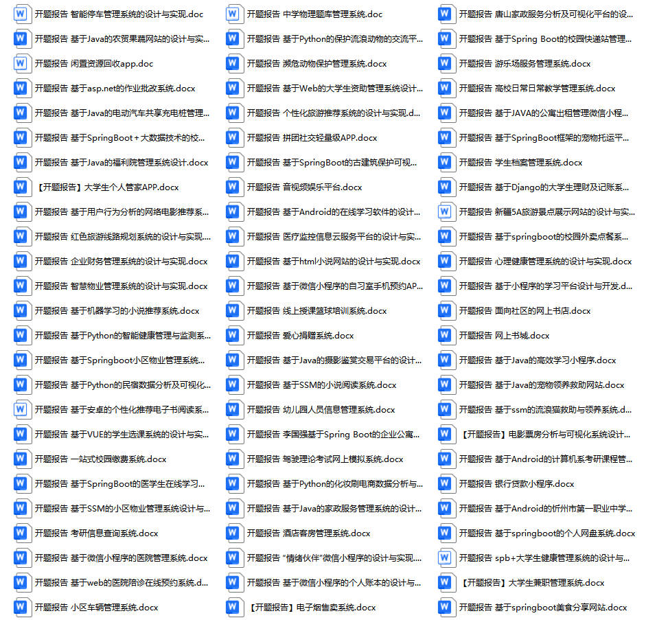 以上是某同学的毕业设计答辩的过程,如果你现在还没有参加答辩,还是开题阶段,已经选好了题目不知道怎么写开题报告,可以下面找找有没有自己符合自己题目的开题报告内容,列表中的开题报告都是往届真实的开题报告,可发送使用或参考。文末或底部来联xi可免费获取