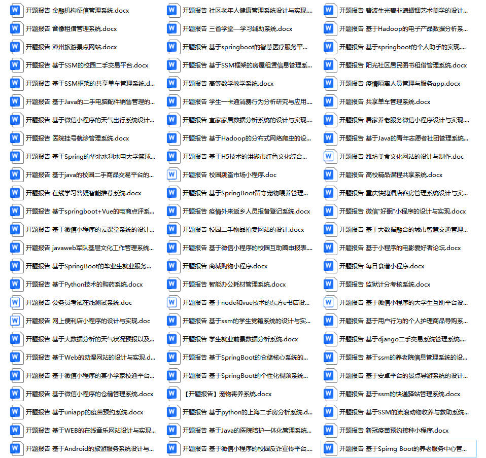 以上是某同学的毕业设计答辩的过程,如果你现在还没有参加答辩,还是开题阶段,已经选好了题目不知道怎么写开题报告,可以下面找找有没有自己符合自己题目的开题报告内容,列表中的开题报告都是往届真实的开题报告,可发送使用或参考。文末或底部来联xi可免费获取