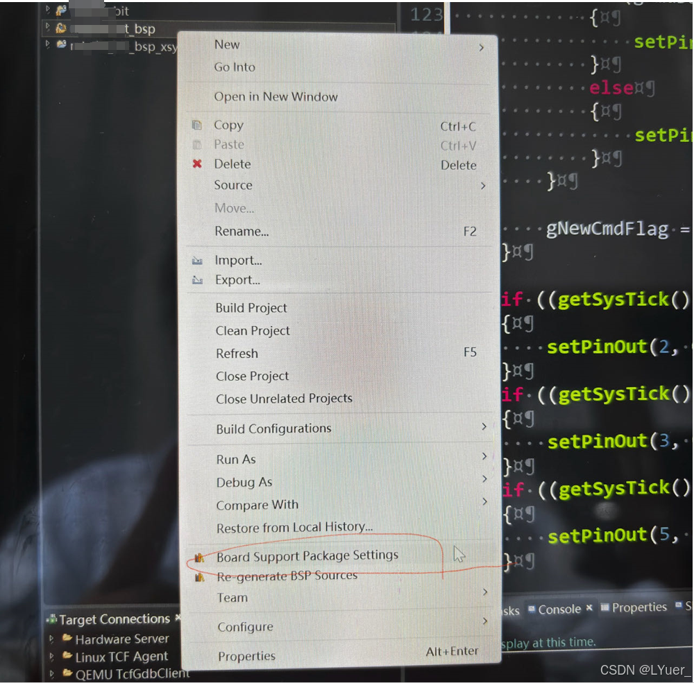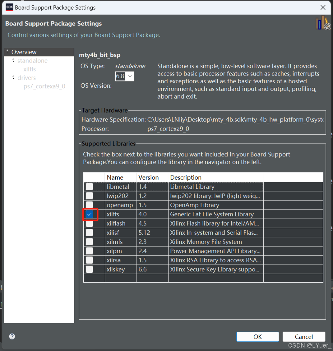 - 打开工程,右键工程bsp文件—Board Support Package Settings,弹出窗口后勾选xilffs选项。