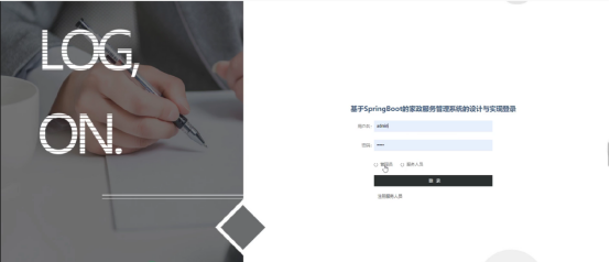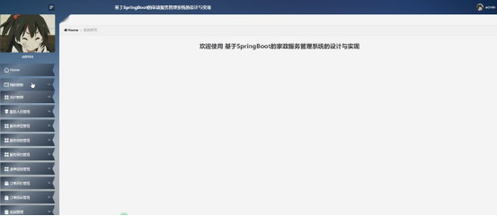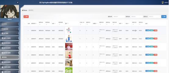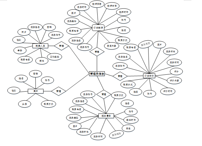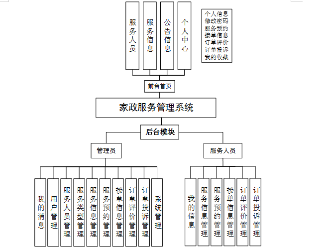 (1)功能要求:管理人员可以管理自己的我的消息、用户管理、服务人员管理、服务类型管理、服务信息管理、服务预约管理、接单信息管理、订单评价管理、订单投诉管理、系统管理等进行管理。