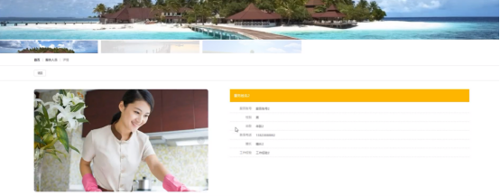 服务人员(档案、照片、擅长、工作经验、评分、收藏数、最近点击)