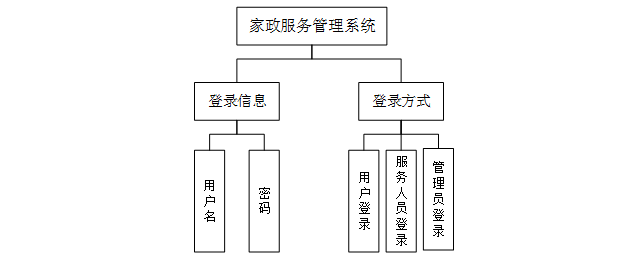 家政服务管理系统综合网络空间开发设计要求。目的是将传统管理方式转换为在网上管理,完成家政服务管理的方便快捷、安全性高、交易规范做了保障,目标明确。家政服务管理系统可以将功能划分为管理员功能、服务人员功能和用户功能。