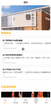 小程序首页是用户注册登录后进入的第一个界面,用户可通过小程序端首页导航栏进入到相应的网页查看信息进行详情操作。小程序首页界面如图5-3所示。