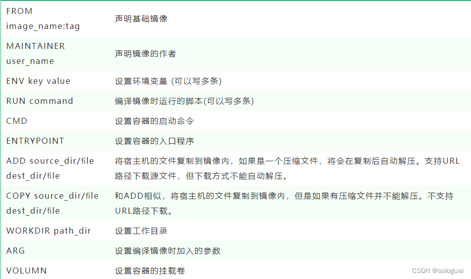 - ADD 的缺点: 在不解压的前提下,无法复制 tar 压缩文件。会令镜像构建缓存失效,从而可能会令镜像构建变得比较缓慢。具体是否使用,可以根据是否需要自动解压来决定。