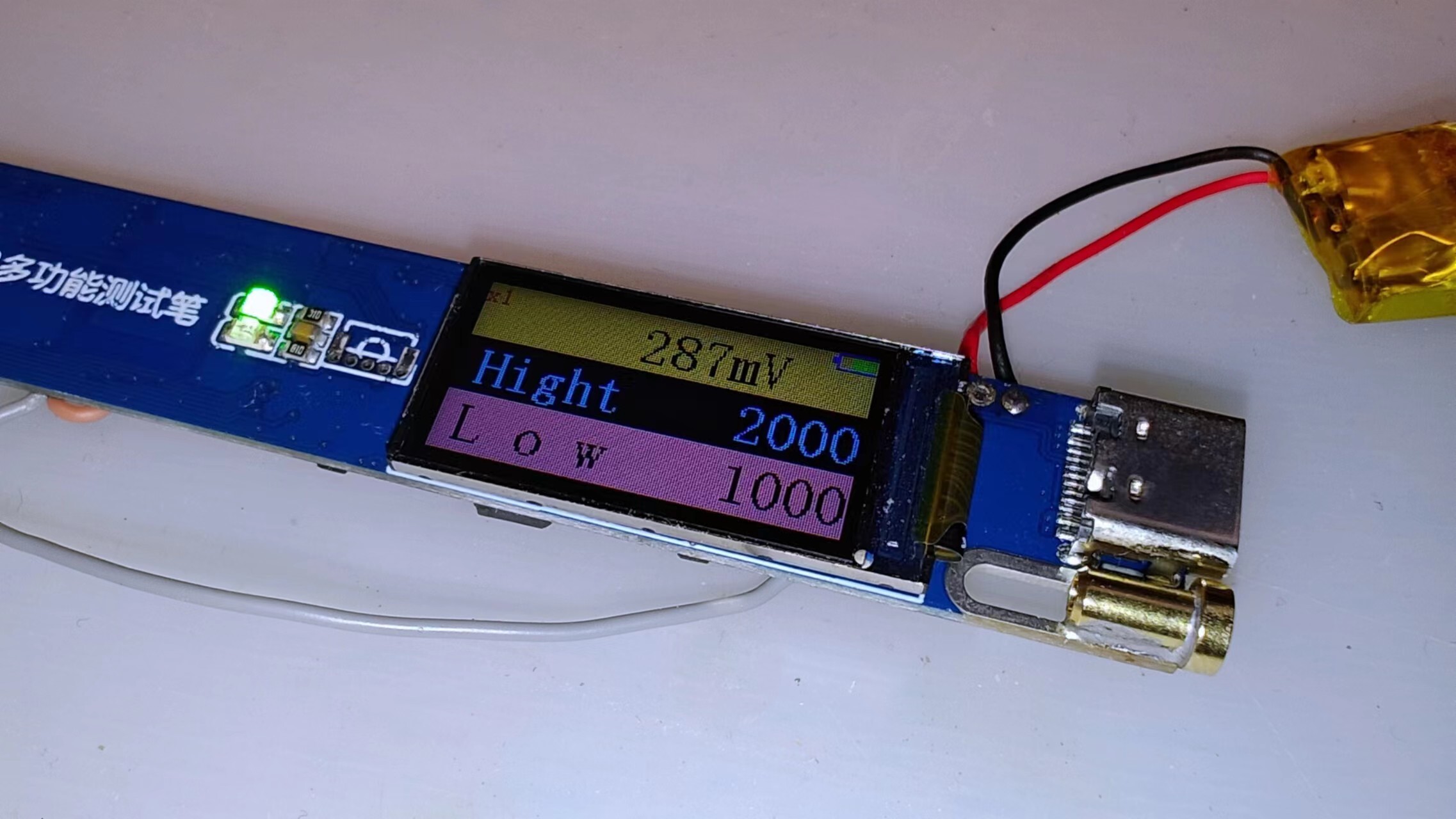 1、电压测量+阈值判断,阈值电平可以根据需求自行设定满足不同逻辑电平的场景,并且保留“简易逻辑电平测试笔“好用的红绿灯提示功能;