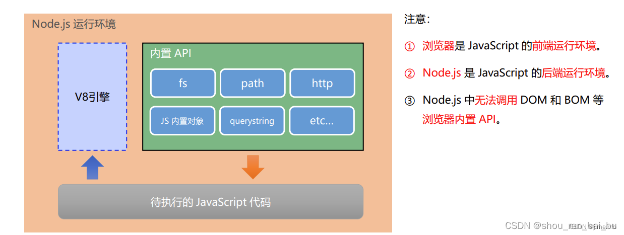 - Node.js 是一个基于 Chrome V8 引擎的 JavaScript 运行环境。
