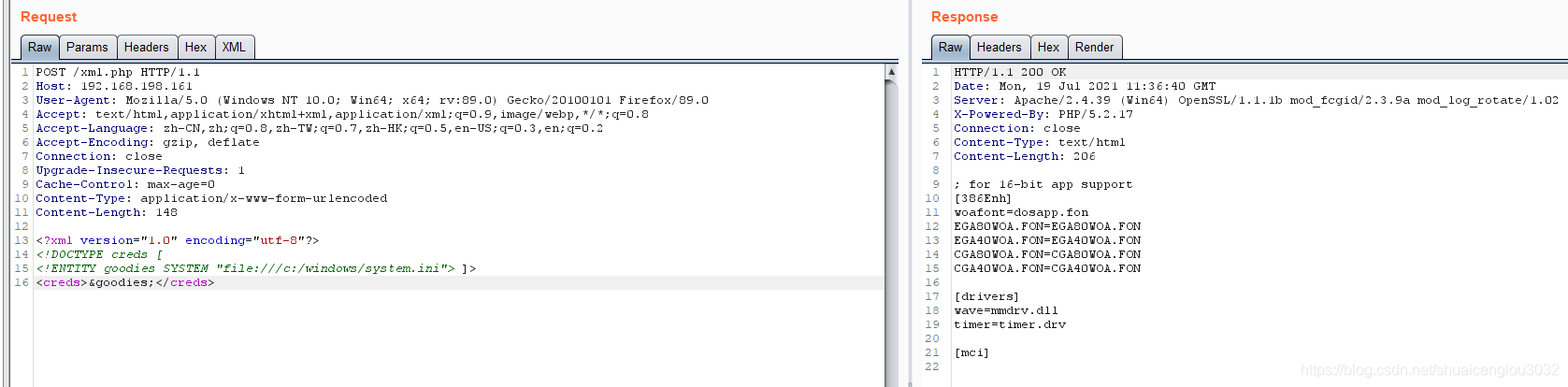 在这段代码里面,使用input伪协议读取post请求里面的数据将其作为XML解析并且输出。