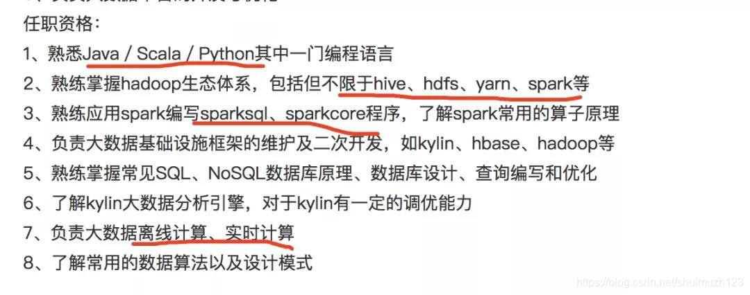 这种工作的话对理论和实践要求的都更深一些,也更有技术含量。随手截了一些招聘信息的图,关于大数据开发岗位具体的工作内容,现如今企业的要求基本如下: