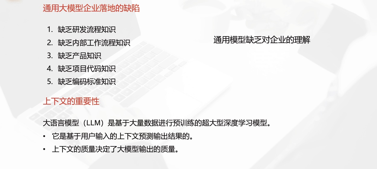 在企业内部有效落地LLM需要考虑多个因素,首先是上下文知识的重要性。LLM的效果高度依赖于上下文的信息完整性和质量,通用大模型在企业落地时,往往会面临缺乏特定领域知识的困境。企业需要创建并维护高质量的知识库,使LLM能够准确理解和预测输出。