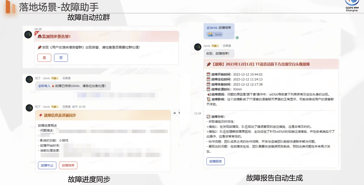 运维方面,LLM可以作为运维助手,提供知识查询、故障排查、自动化提单等服务,通过多Agent协作,提升运维效率和系统稳定性。在故障处理过程中,LLM可以自动拉群、同步故障进度、生成故障报告,确保及时、准确地处理问题。
