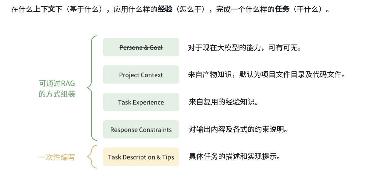提示词框架是一个用于指导和优化大模型辅助开发过程中知识应用的结构化方法。它涉及以下几个核心组成部分: