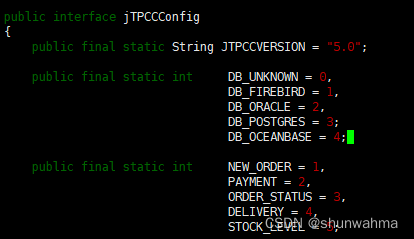 修改 benchmarksql-5.0/src/client/jTPCCConfig.java 文件,增加 OceanBase 数据库类型。