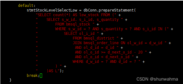5.修改 benchmarksql-5.0/src/client/jTPCCConnection.java 文件,在 SQL 子查询增加"AS L"别名。
