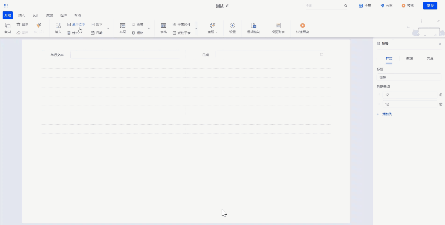 通过组件拖拽,对培训申请表进行样式设计。同时对申请人、申请信息、申请日期这些信息进行数据绑定,和底层数据库字段进行一一对应,实现前端和数据库的联动。