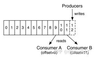 这种方法有一个缺陷——没有办法删除数据 ,所以Kafka是不会删除数据的,它会把所有的数据都保留下来,每个消费者(Consumer)对每个Topic都有一个offset用来表示读取到了第几条数据 。