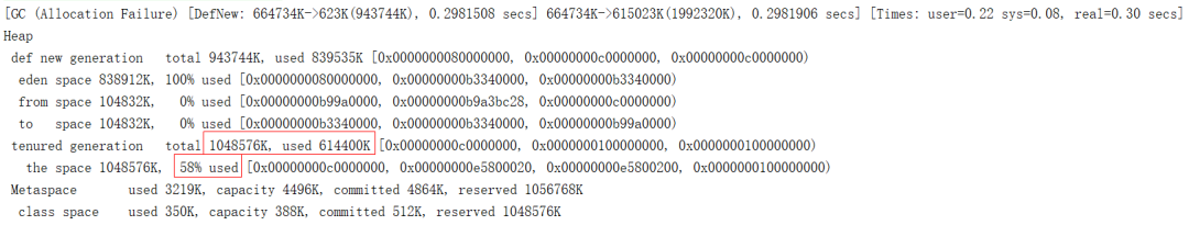 从结果可以看出,from和to都没有占用内存,而老年代则占用了很多内存。