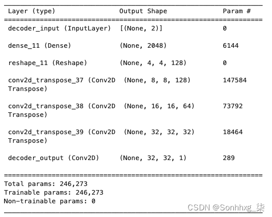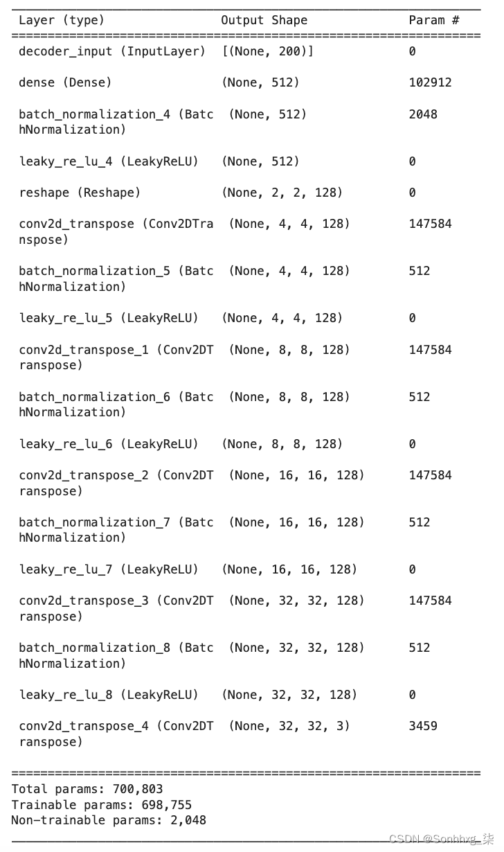 在Keras,该Conv2DTranspose层允许我们对张量执行卷积转置操作。通过堆叠这些层,我们可以逐渐扩大每一层的尺寸,使用步长 2,直到我们回到原始图像尺寸32 × 32。