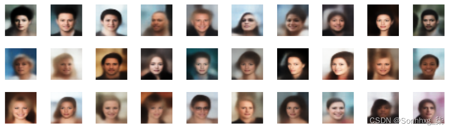 经过大约五个 epoch 的训练后,您的 VAE 应该能够生成新颖的名人面孔图像!