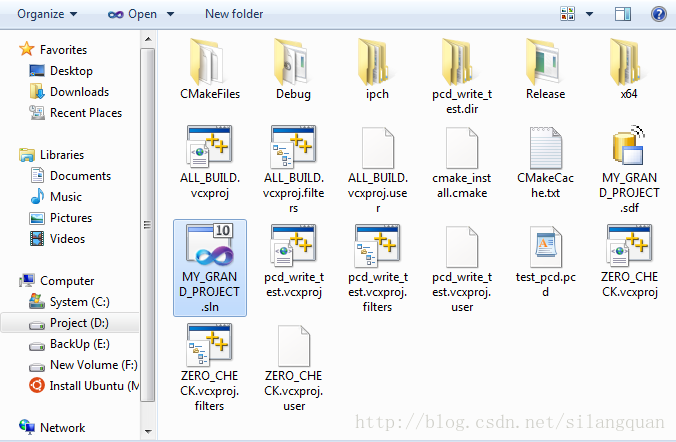 成功时候在build文件夹下就生成了对应的vs2010工程了,直接双击打开 MY_GRAND_PROJECT.sln