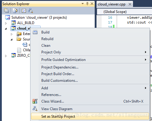 导入后在cloud_view上 右击->Set as StartUp Project,如下图: