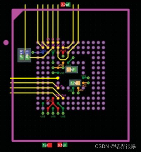 为了合理和方便Layout,eMMC的去耦电容组合推荐如下图所示。