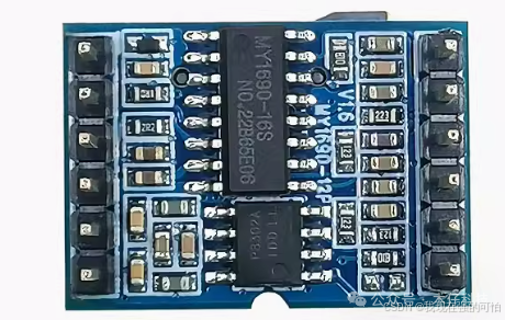 •通过串行接口(如SPI)与主控器通信,控制音频播放。