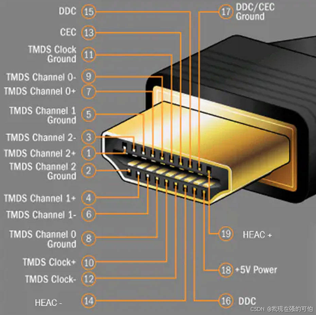 标准HDMI接口公头引脚序号与定义图解如下图所示: