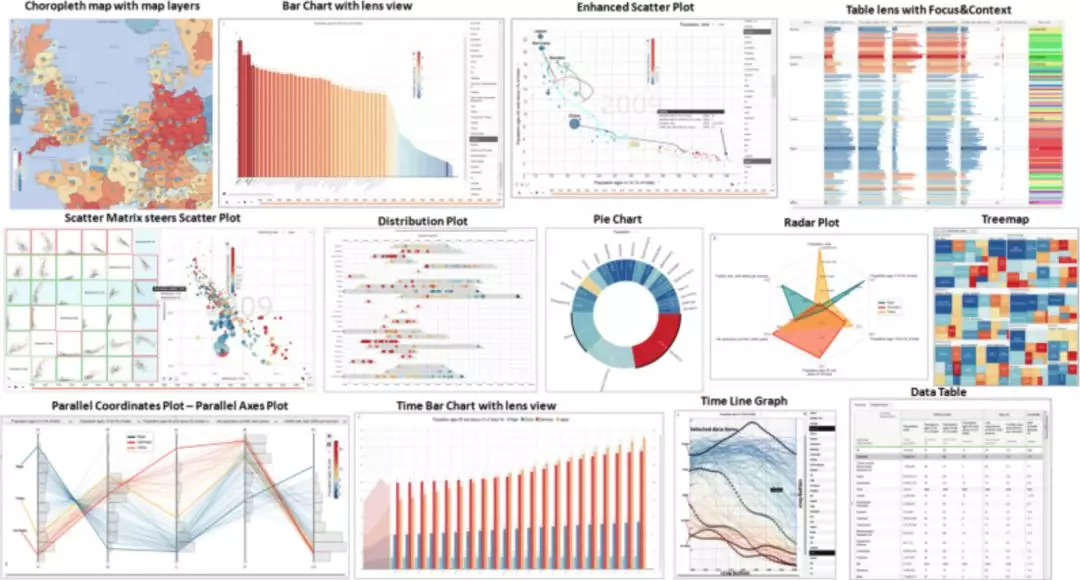 有非常多的图表类型可以使用,但是要根据要解决的问题、数据的结构、选择的数据维度来确定要显示的图表类型: