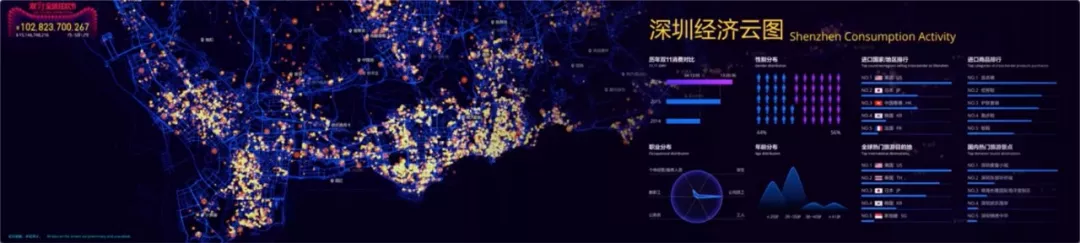 大屏应用:大屏展示一般以地理数据为载体,如建筑,道路,轨迹等数据可视化。