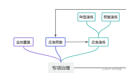 到此,大家应该也能大致猜到专项治理是要治理什么了,我们不妨以应急SLA:1-5-10作为目标,从监控覆盖、应急预案、应急演练三个方向展开治理。