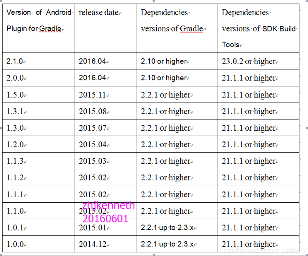 compileSdkVersion与gradle版本及android plugin vertion 有如下对应关系