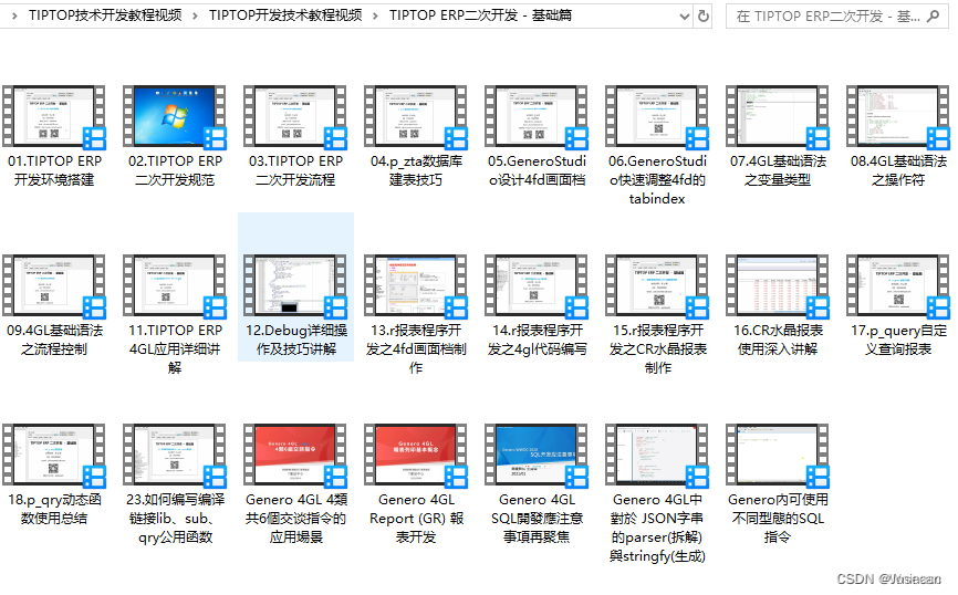超全 鼎捷TIPTOP/GP开发培训视频下载 TIPTOP二次开发资料 鼎捷TIPTOP/GP作为领先的企业管理软件,其开发和应用对于企业运营效率的提升至关重要。为了帮助开发者和企业用户更好地掌握TIPTOP/GP的二次开发技术,提供了一份超全面的开发培训视频和资料,涵盖从基础到高级的各个层面;