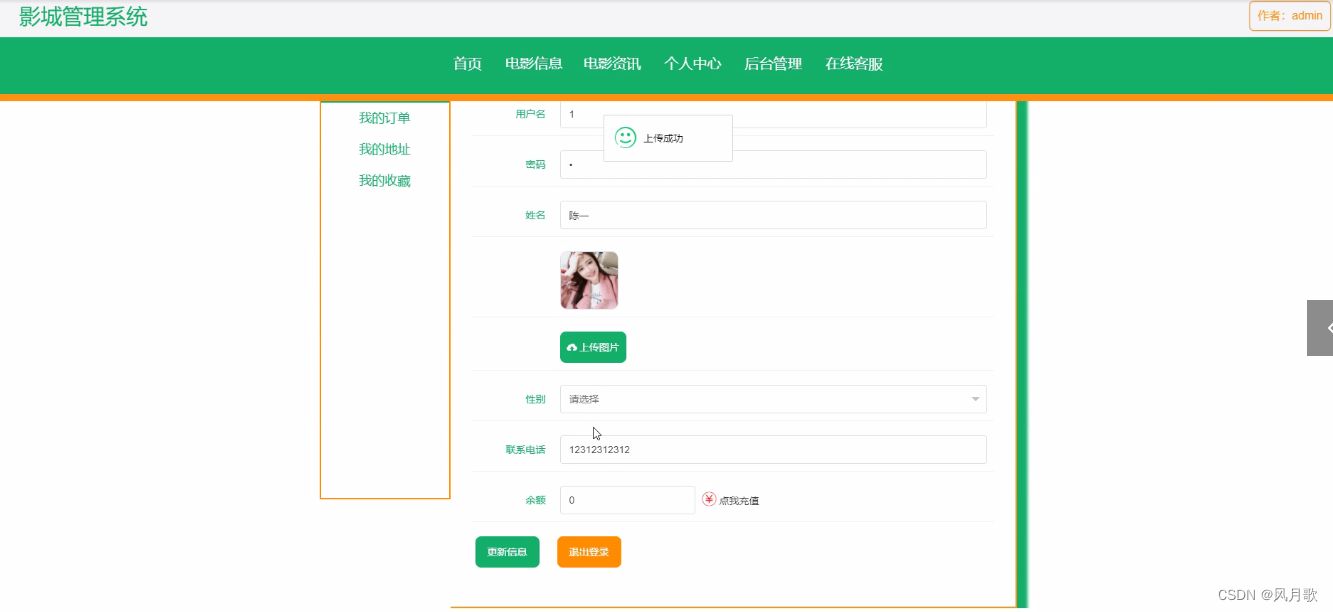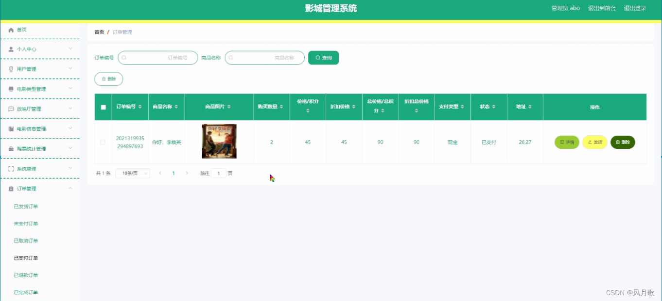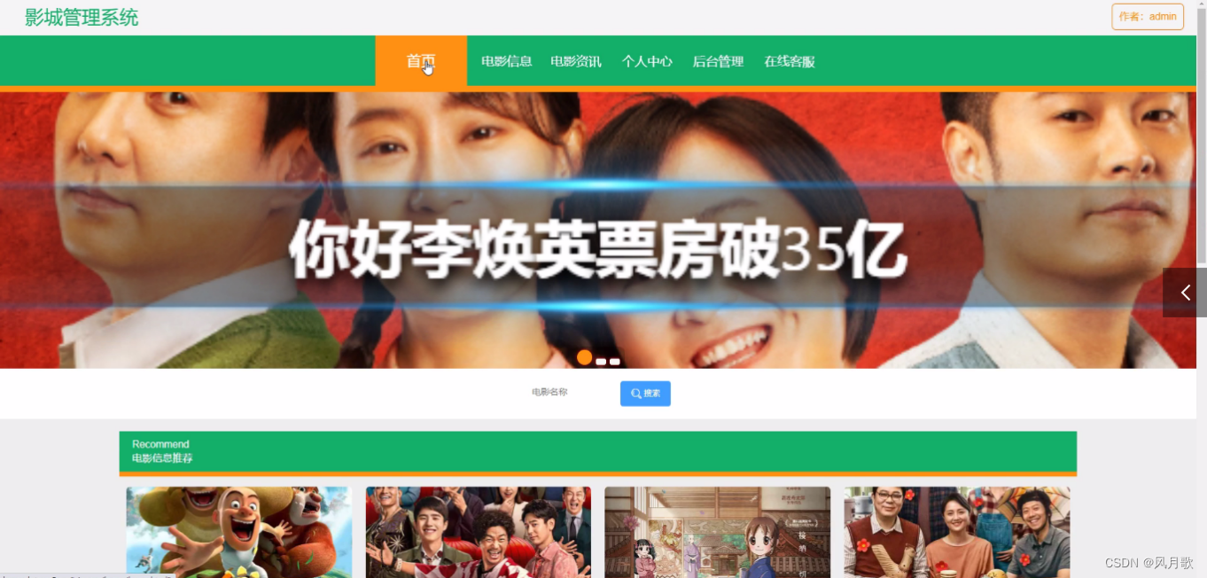 风定落花生,歌声逐流水,大家好我是风歌,混迹在java圈的辛苦码农。今天要和大家聊的是一款基于springboot的影城管理系统。项目源码以及部署相关请联系风歌,文末附上联系信息 。