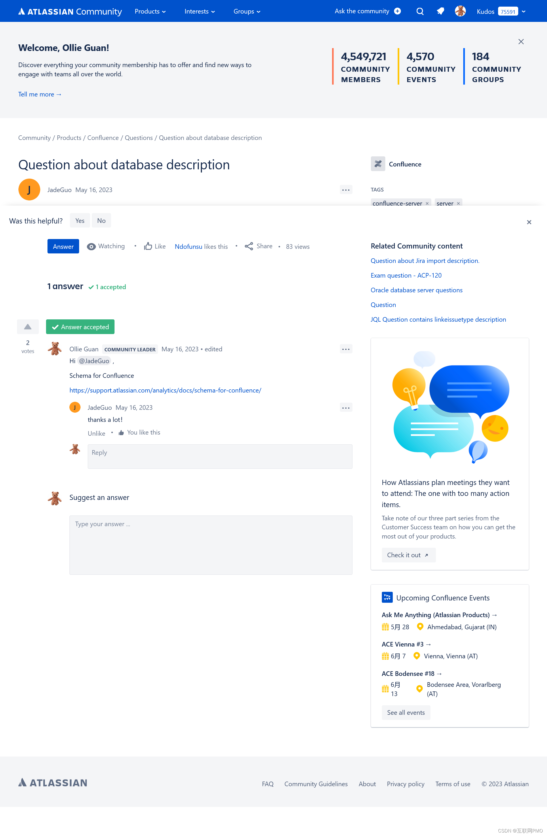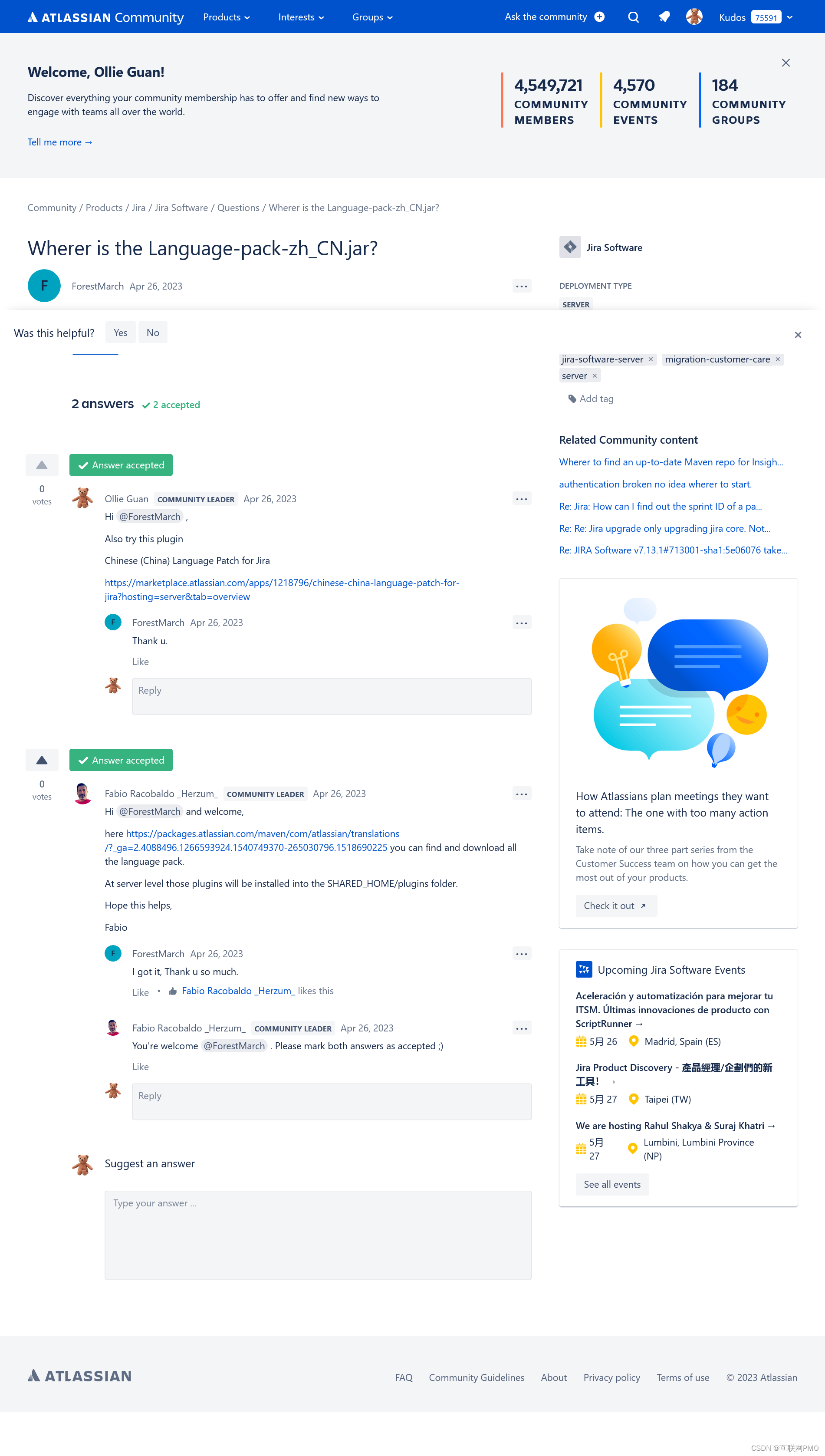 Join free, user-led events — wherever you are 无论您是新手用户还是高级用户,参加社区活动都是让您结识其他同城Atlassian产品用户的绝佳方式。服务/连接/创新 Connect Globally, Meet Locally。