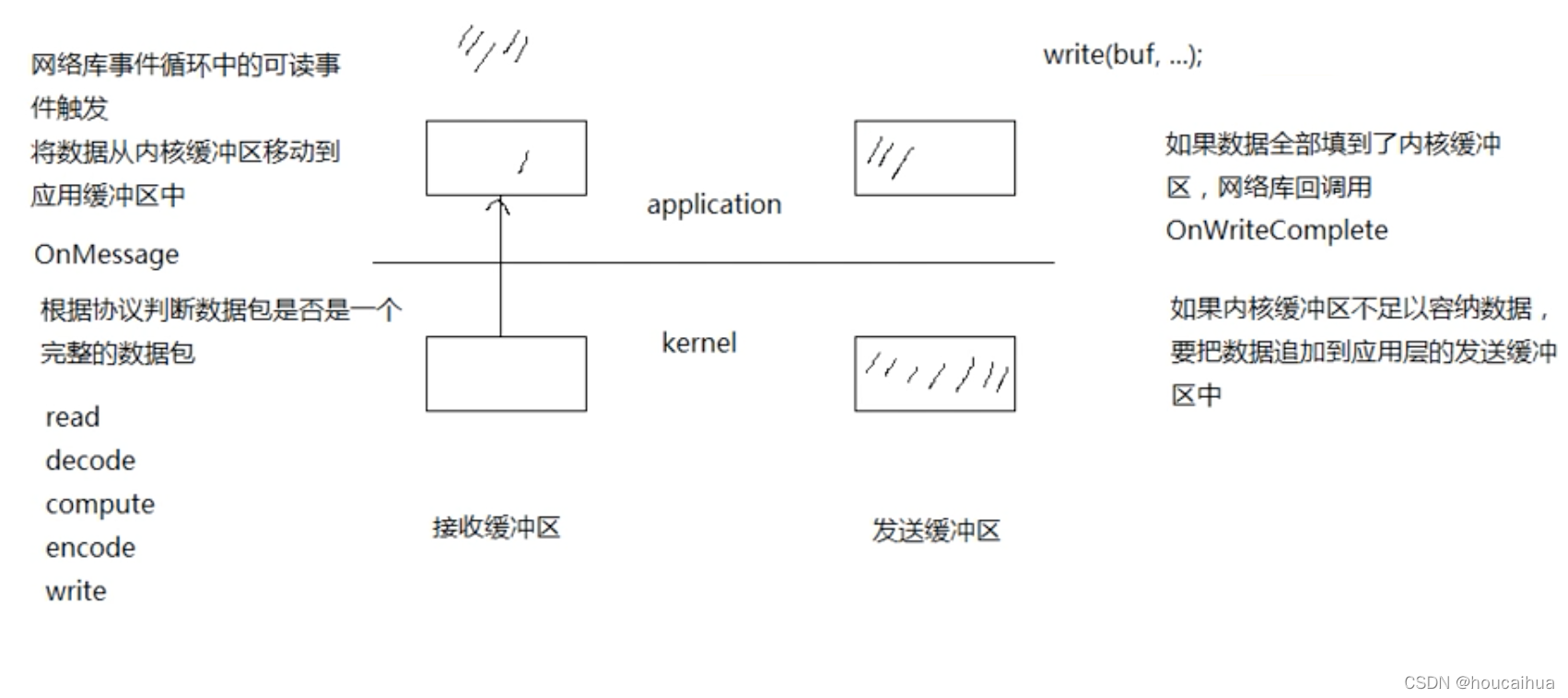 4、消息发送完毕:这算半个。对于低流量的服务,可不必关心这个事件,这里的发送完毕是指数据写入操作系统缓冲区,将由TCP协议栈负责数据的发送与重传,不代表对方已经接收到数据。对于高流量的程序,应用要在发送完毕后再发送,以免数据丢包。
