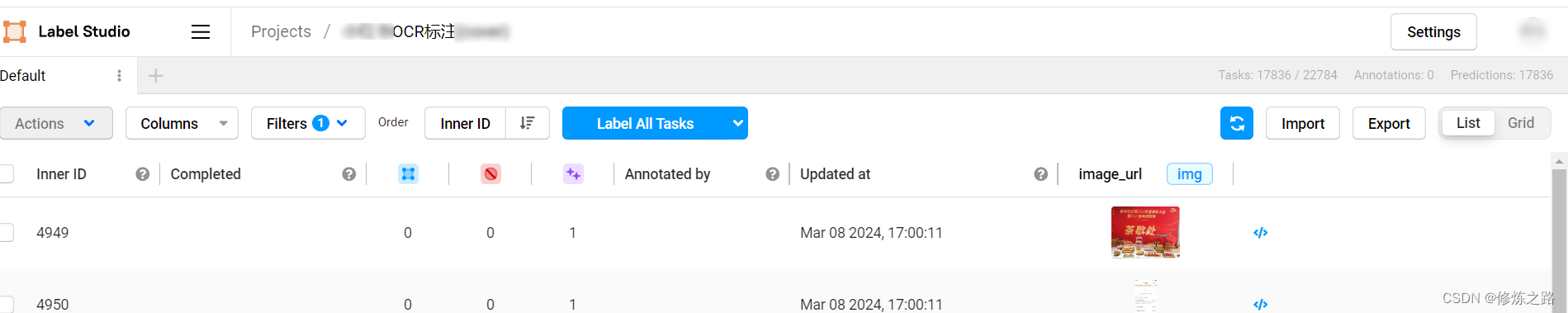 因为在进行OCR数据标注的时候,我们需要去访问图片,而label studio针对图片的访问方式提供了两种方法,第一种就是使用label studio自带的Cloud Storage,第二种就是通过图片链接去访问,相对来说第二种方式会更加的灵活