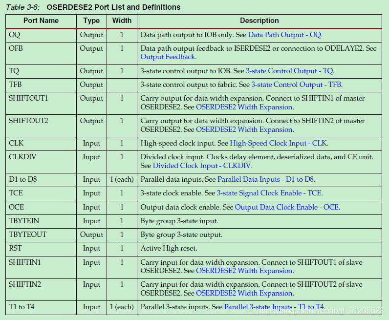 介绍OSERDESE2模块的属性参数,这个花样比上面说的Port多,见下图属性的总结List: