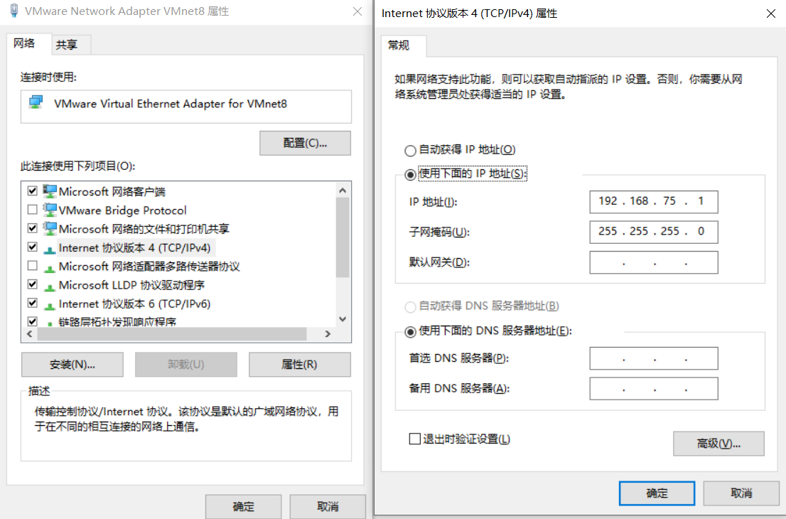 关于虚拟机能ping通主机,主机却ping不通虚拟机的问题 检查以下三个配置1.VMnet8的IP配置2.虚拟机虚拟网络编辑器NAT设置的网关配置3.虚拟机网卡配置文件里的网关配置注意:192.168.75 IP前缀可以由虚拟机的host通过动态IP自动获取,先得到虚拟机的IP地址,进而得到以上IP地址的前缀。...