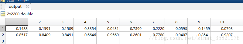 下面将测试集中的标签和结果中的概率导入到matlab中(注:如果只有两类需要将-1的标签改为0),导入到Matlab的结果如图