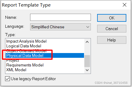 3.选择Physical Data Model,Name随便起个名字填入,点击OK