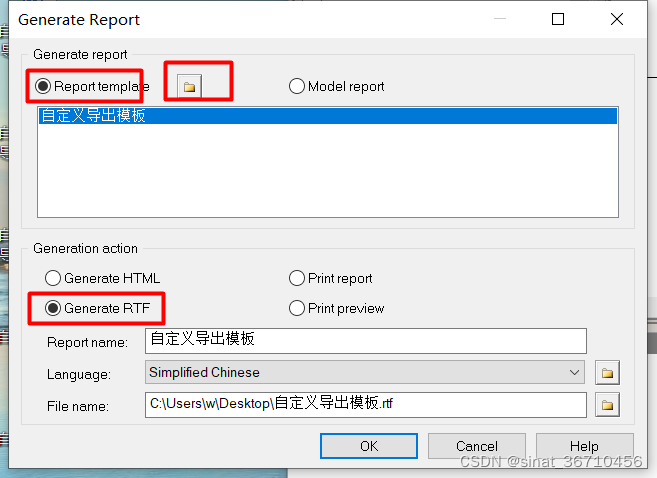 10.选择刚才新建的模板,Generate RTF导出为world文件,Generate HTML导出为html文件