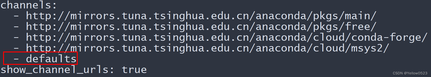 这里我的用户名为yellow,winows系统下.condarc文件的路径为