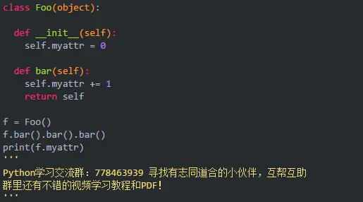 在Python中,return self的作用为:(英语原文,笔者水平有限,暂不翻译)