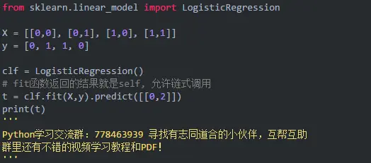 sklearn模块中很多方法的返回结果为self, 比如大多数模型的fit()方法,例子如下: