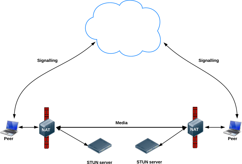 大多数WebRTC呼叫使用STUN成功建立连接 - 根据 Webrtcstats.com 为86%,尽管对于防火墙和复杂NAT配置后面的对等体之间的呼叫,这可能更少。